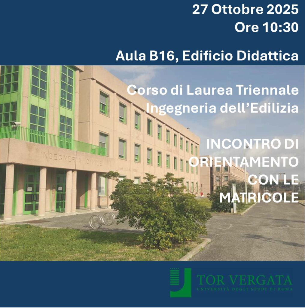 L’incontro è aperto a tutti gli studenti interessati dei Corsi di Laurea in Ingegneria dell’Edilizia e di Ingegneria e Tecniche del Costruire.