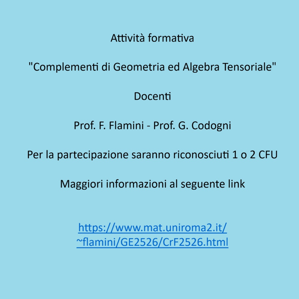 Per la partecipazione all’evento e la consegna di una relazione (da inviare all’indirizzo di.carlo@ing.uniroma2.it) saranno riconosciuti 0.5 cfu